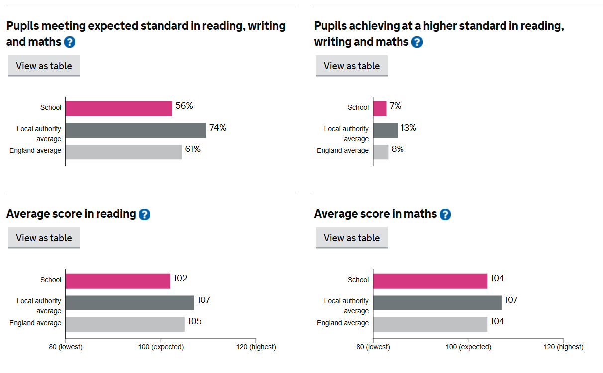 You can view information on school performance by referring to the 'Compare School Performance' website provided by the DfE - Click here to open the comparison site.